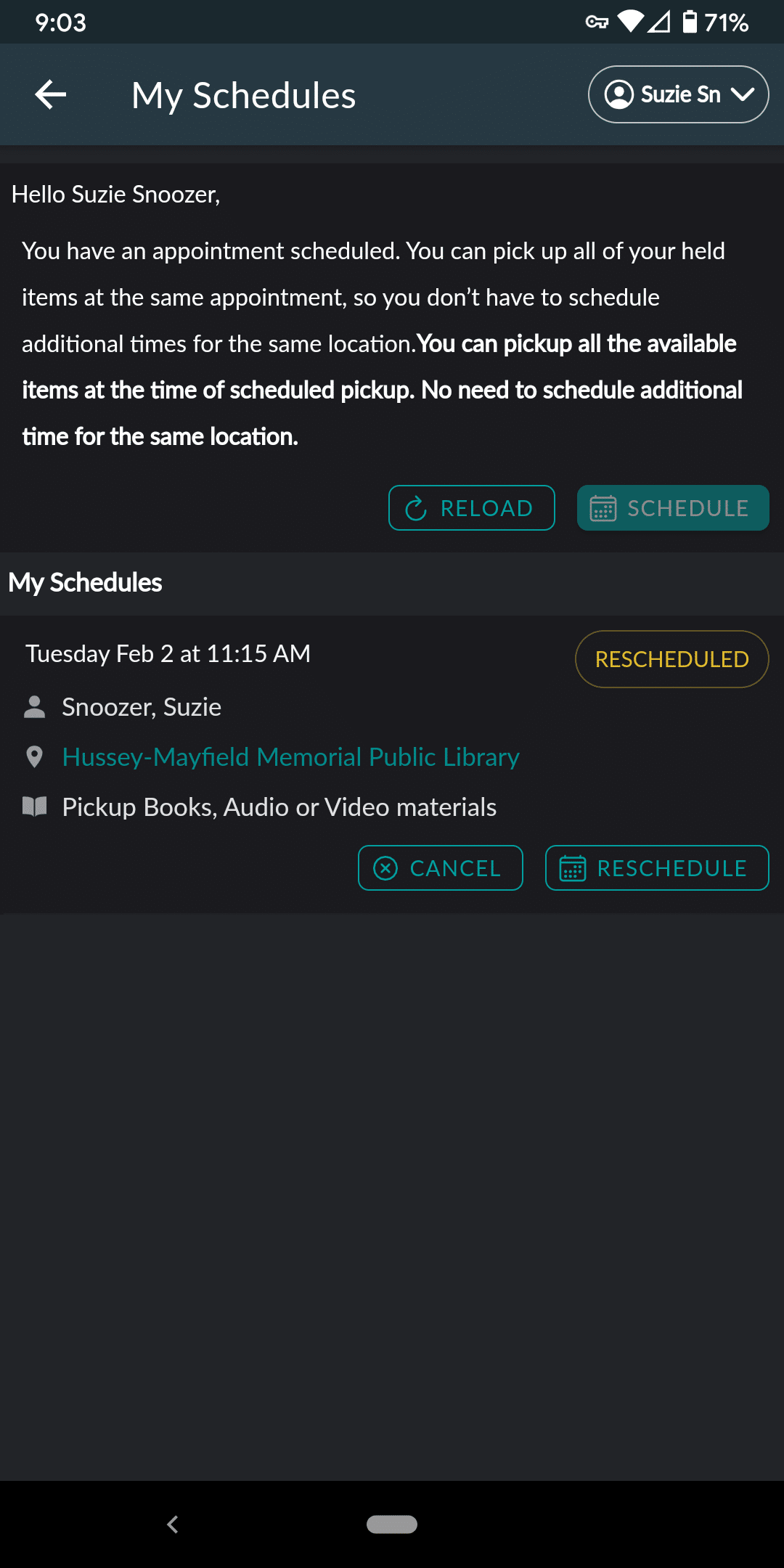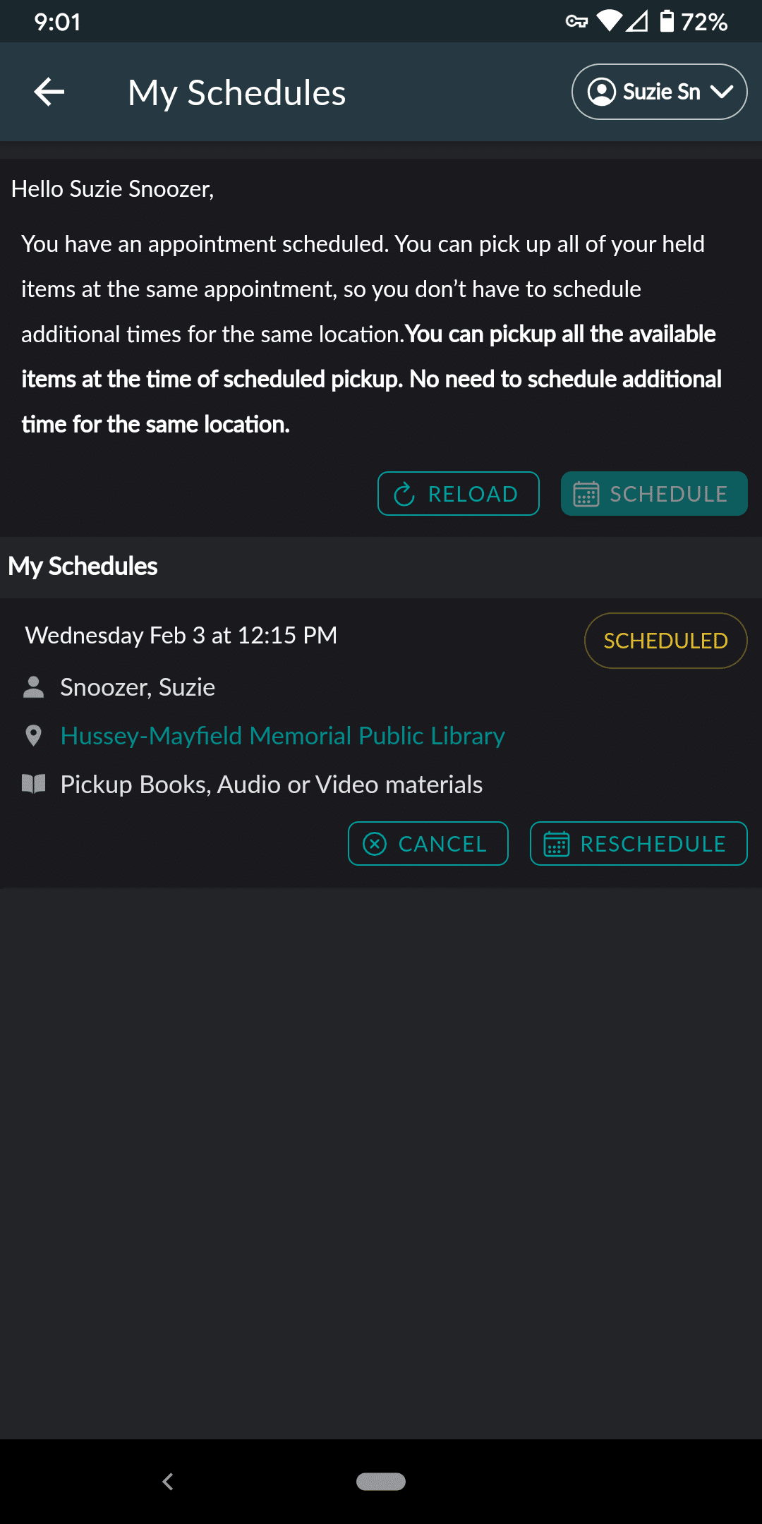 - Select the Schedule button at the bottom to schedule your Holds Pickup time
