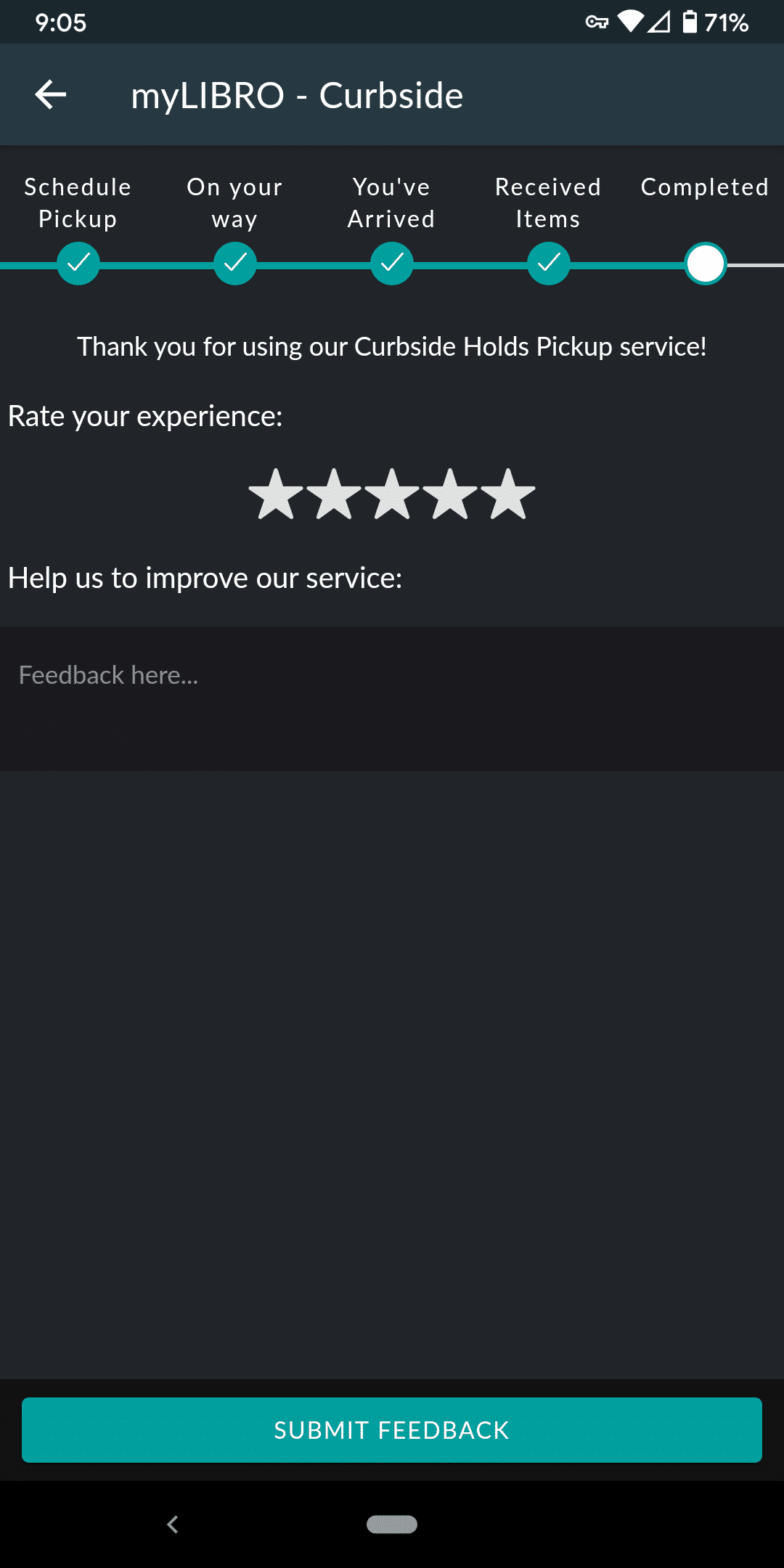 - Thank you for using the Library’s Curbside Holds Pickup service!